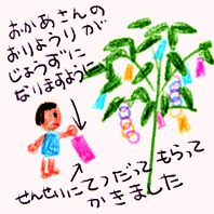 それで、ほいくえんの たなばたの たんざくに